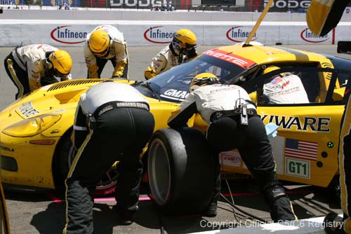 C6R faithful watch the #4 car in a late Friday practice session. |